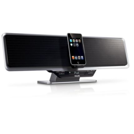 The Philips Docking Entertainment System DC910 offers a new way to rock to music and videos on your iPod with dual speakers that add deep, powerful bass to all music – from any source. The docking system features stylish, slim designs with table-stand and wall-mount options that blend seamlessly into any interior.Enjoy your videos the right way simply by rotating your iPod from portrait to landscape position on the Philips Docking Entertainment System DC910. Plus, dual wOOx loudspeakers impart deep, powerful bass to all your music - from any source!